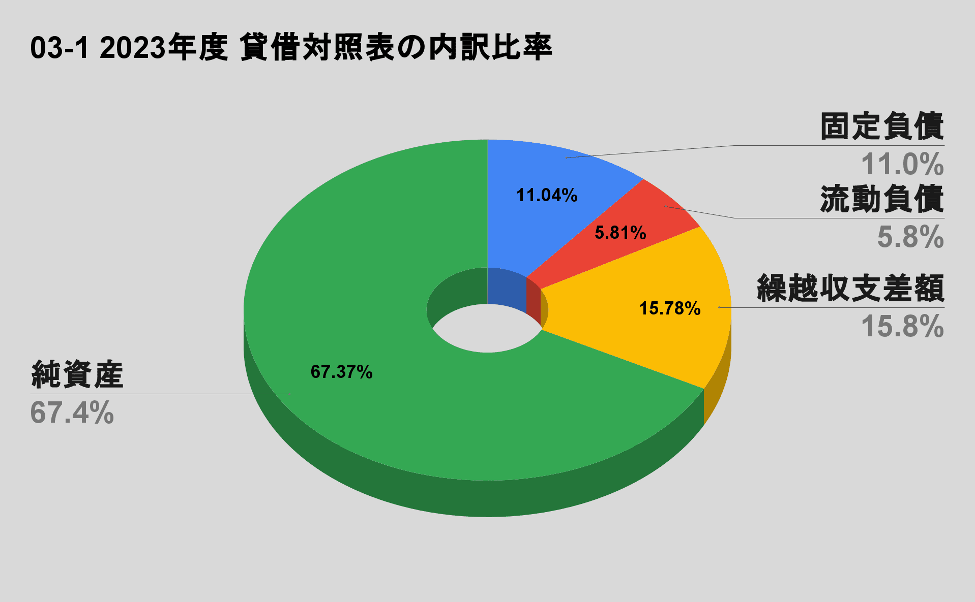貸借対照表の内訳を円グラフを使って比率で出して見ました。