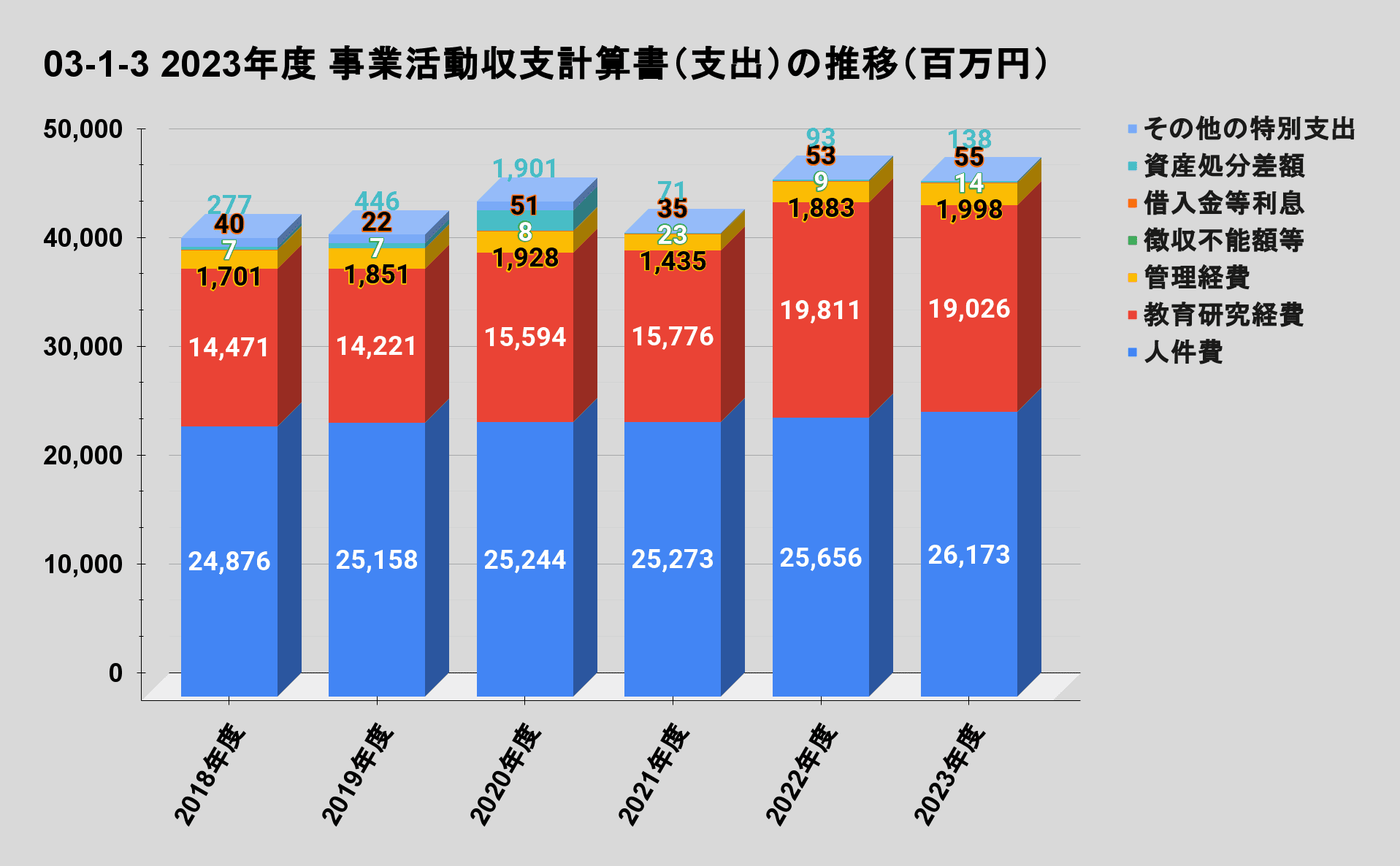 | 教育活動支出計 | 41,055,084,429 | 41,238,361,396 | 42,774,029,152 | 42,506,908,385 | 47,358,855,877 | 47,211,534,646 |