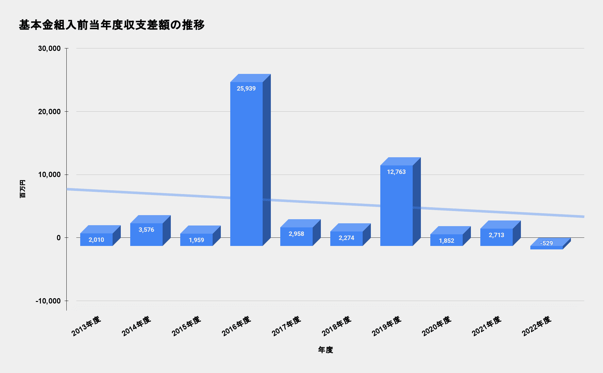 基本金組込前差額の推移(一般企業でいうと純利益)