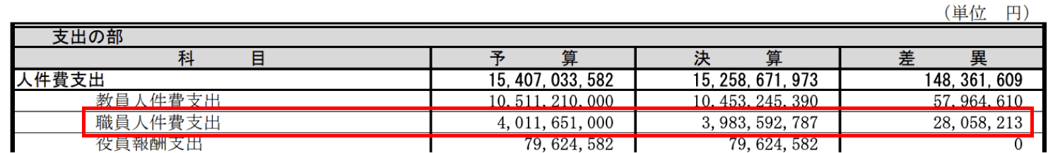 - 専任職員の人件費:3,983,592,787円ー479,604,000円=3,503,988,787円