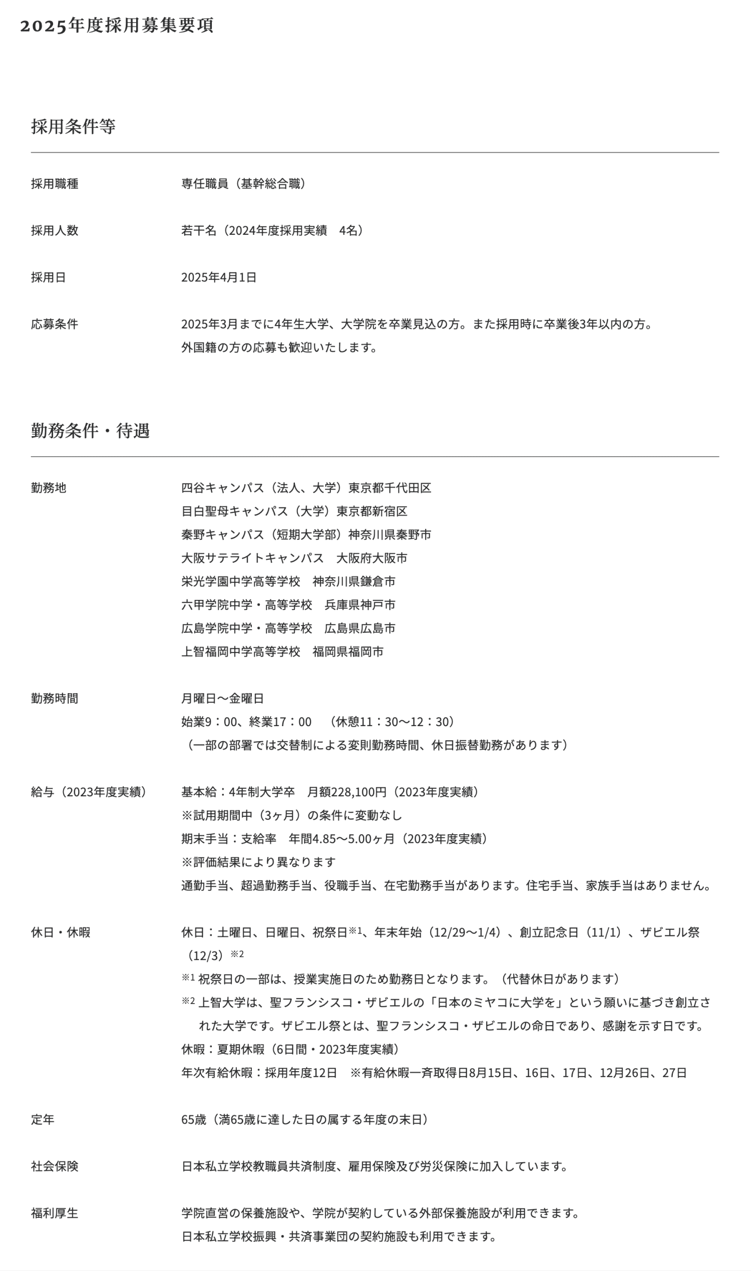雇用条件(勤務時間・初任給・賞与・休日・休暇・諸手当・社会保険・福利厚生・定年制)は?