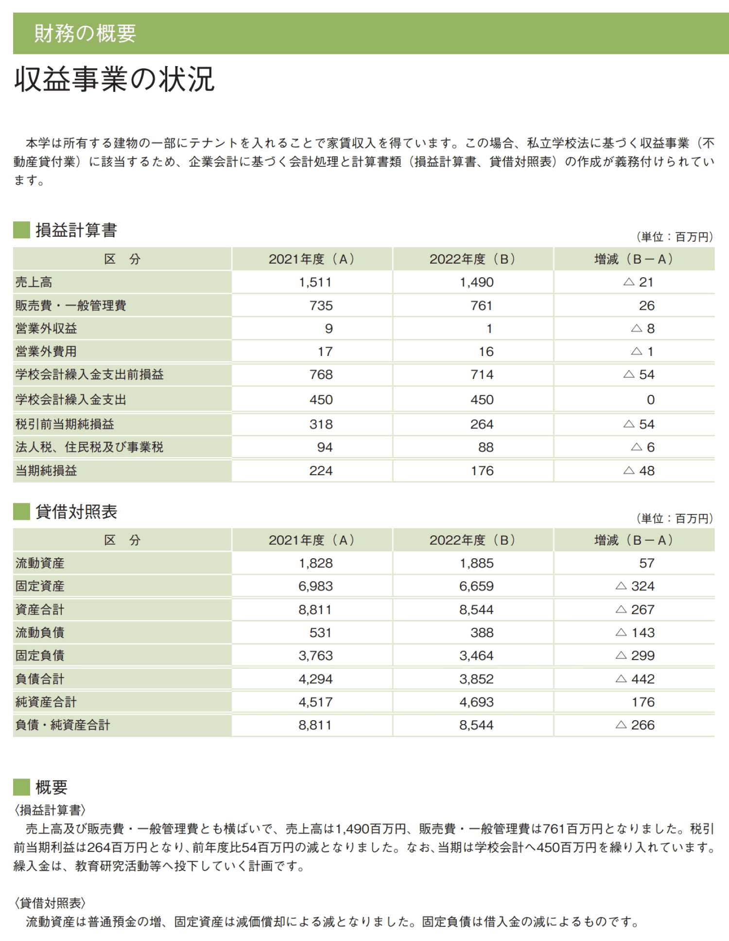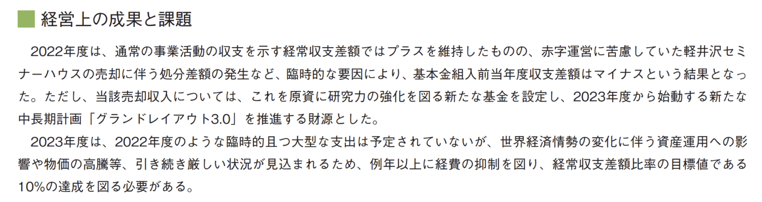 根拠資料は2023年度の報告書がまだ公開されてないので、2022年度の事業報告書・財務情報です。