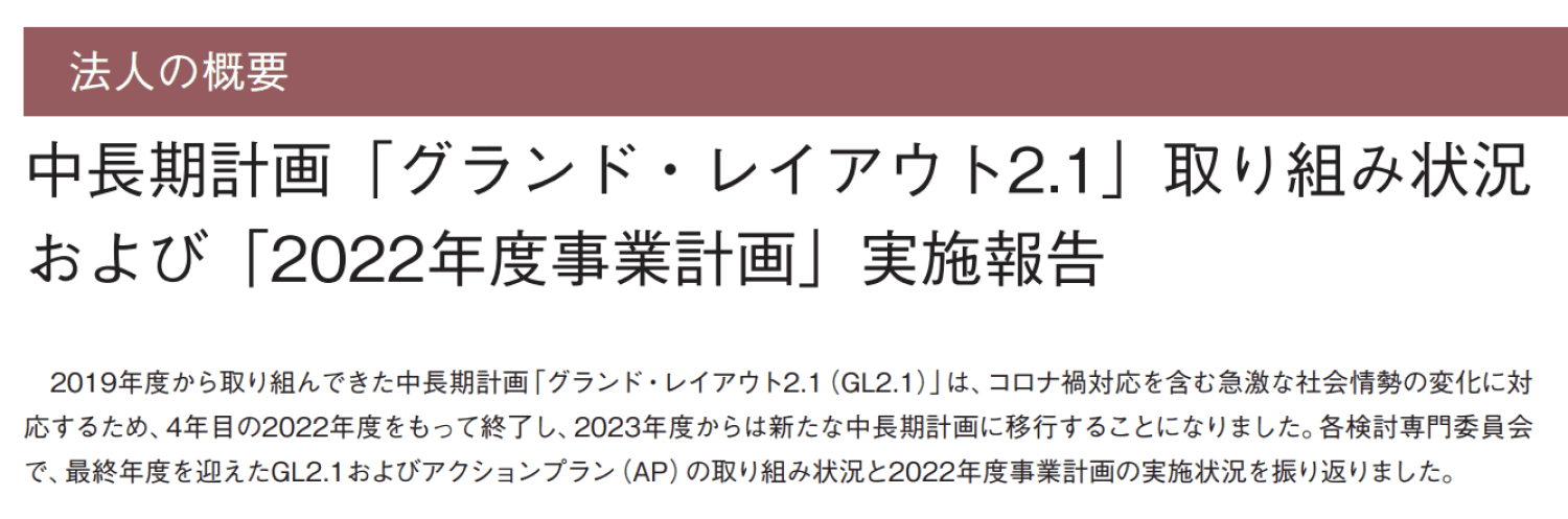 で、最終年度を迎えたGL2.1およびアクションプラン(AP)の取り組み状況と2022年度事業計画の実施状況を振り返りました。