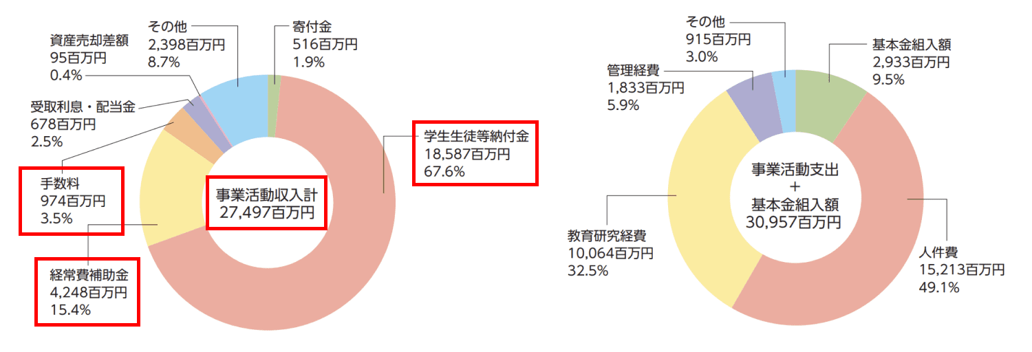 | 教育活動収入(百万円) | 20,556 | 21,426 | 21,424 | 50,050 | 26,604 | 26,968 | 26,821 | 26,721 | 26,340 | 26,131 |