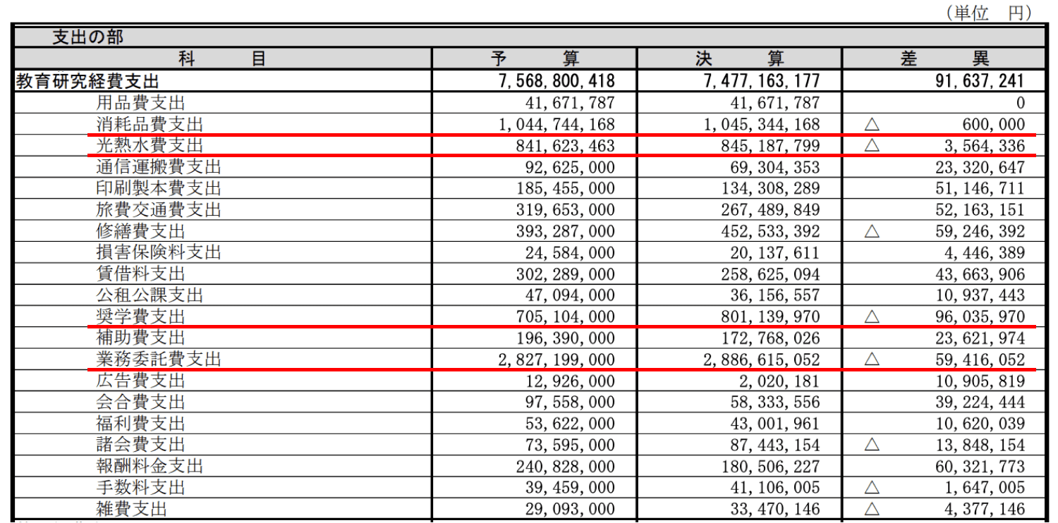 - 教育研究活動以外に使用する施設、設備の修繕、維持、保全に要する経費(減価償却贅を含む。)