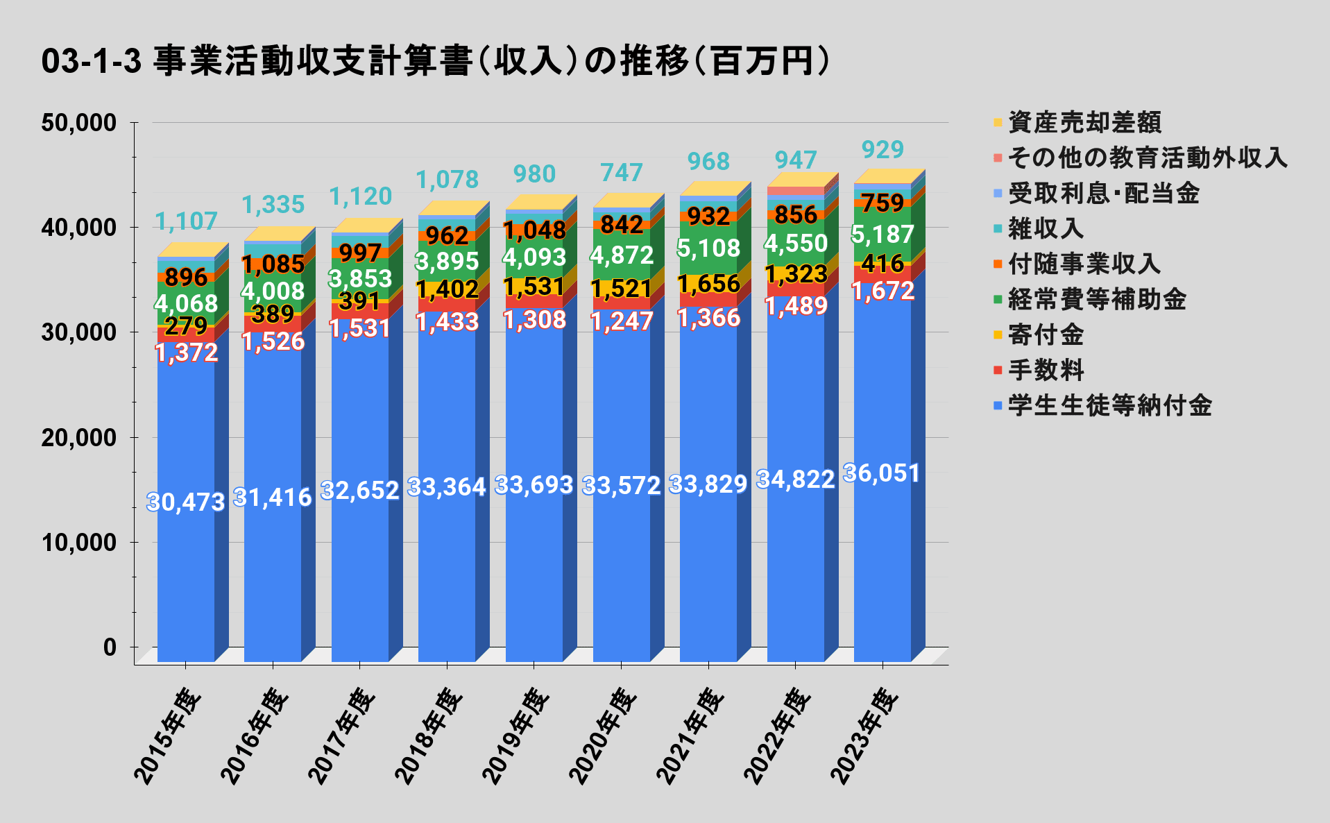 | 教育活動収支 | 事業活動収入 | 雑収入 | 928,761,433 |