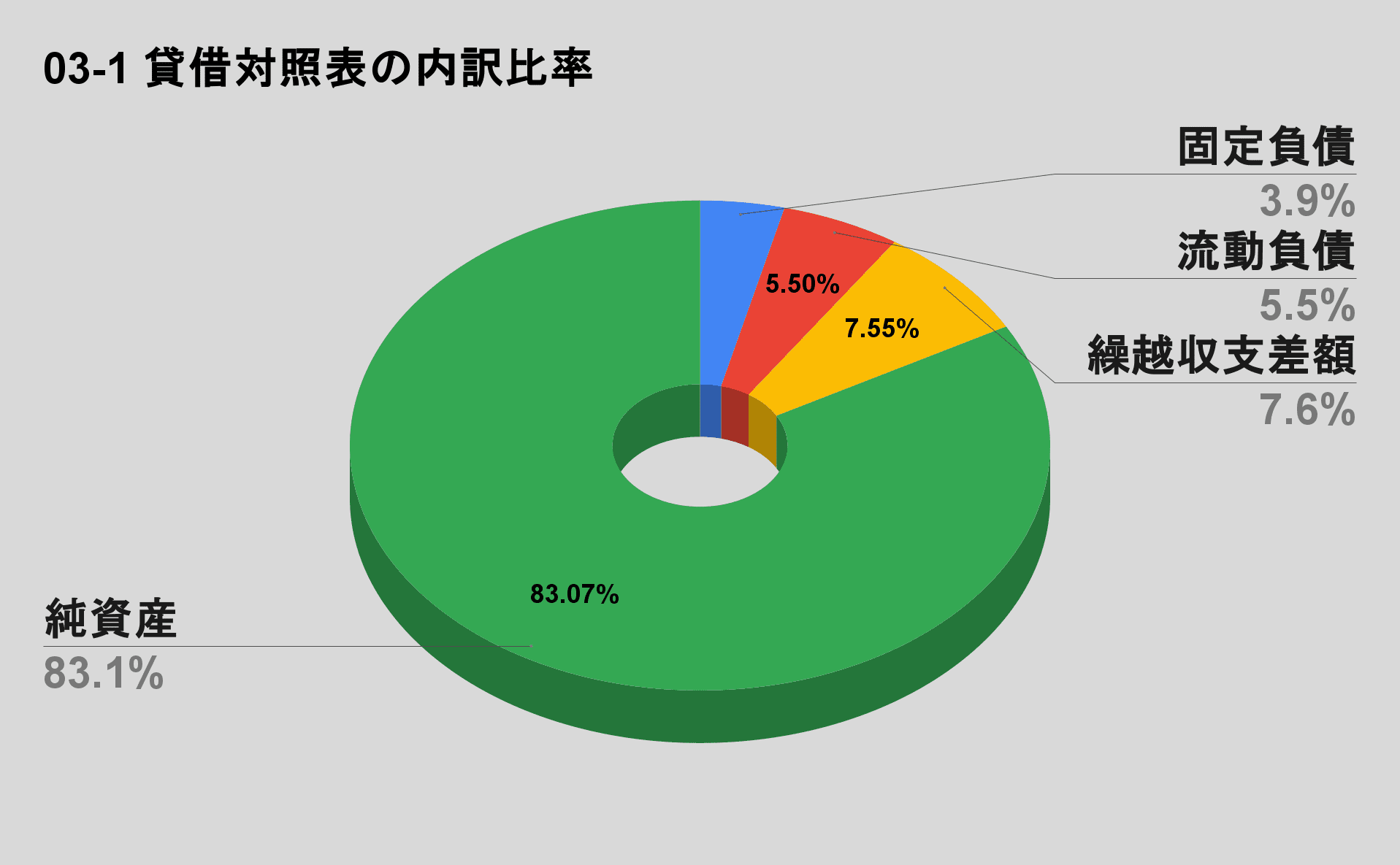 貸借対照表の内訳を円グラフを使って比率で出して見ました。