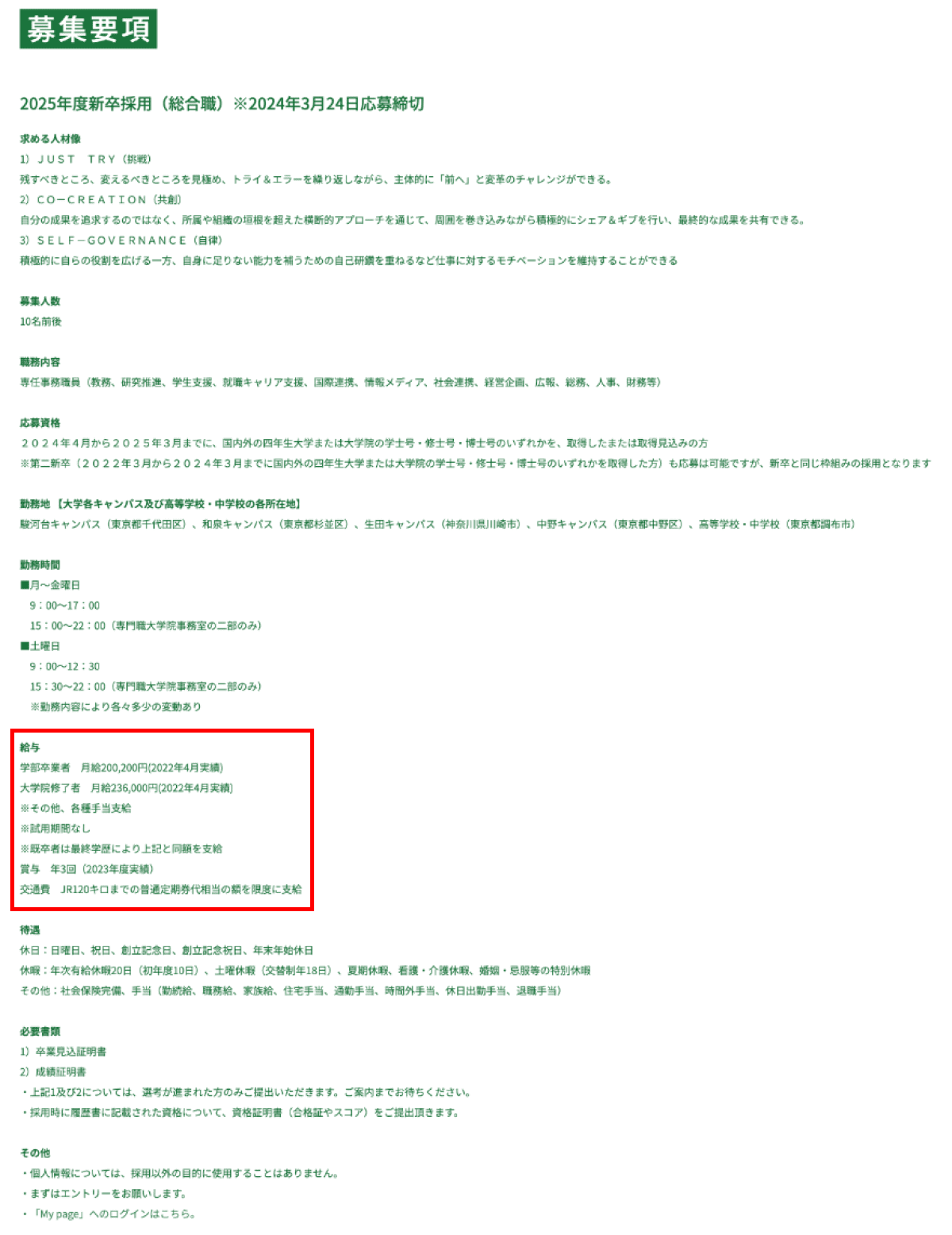 学部卒業者 月給200,200円(2022年4月実績)