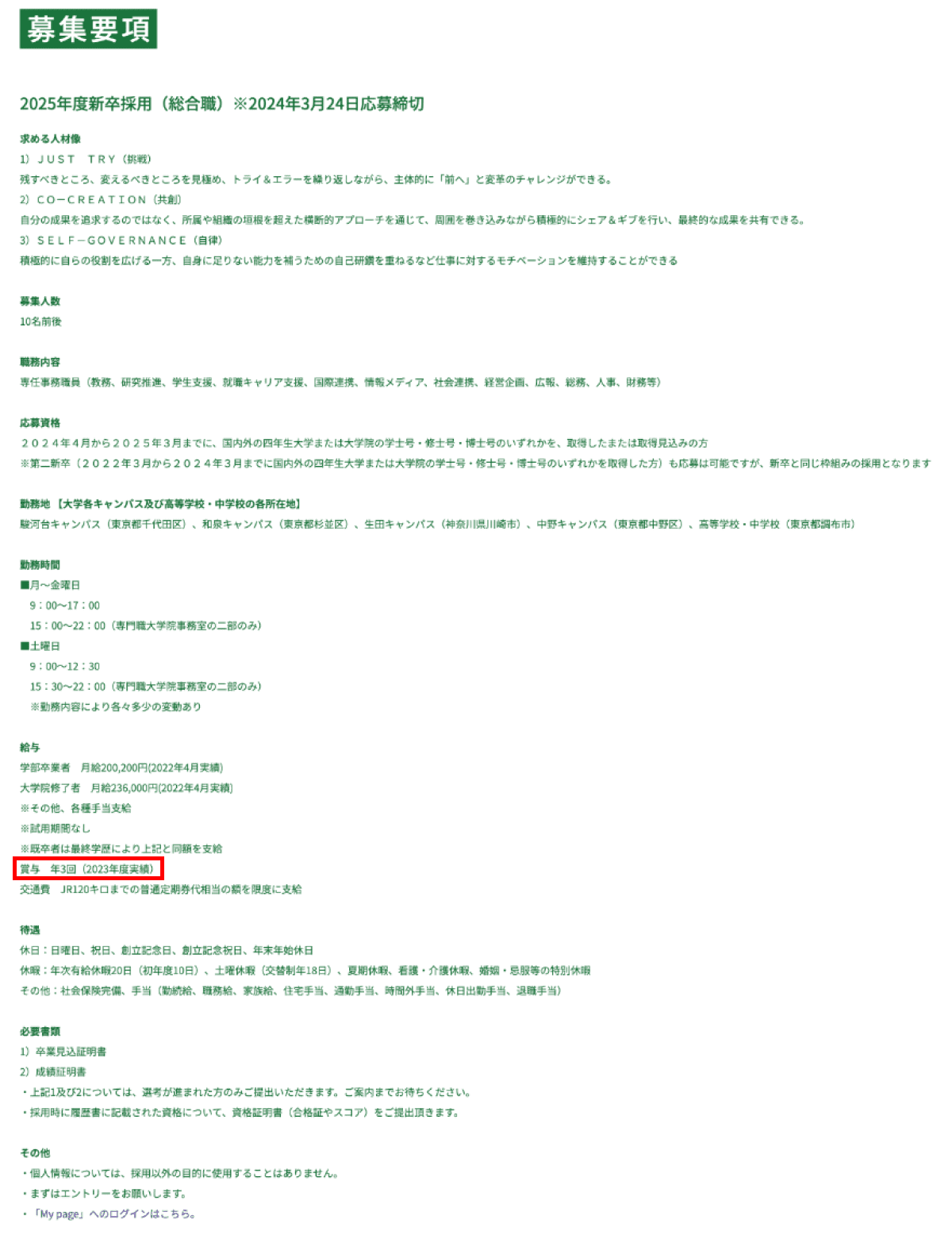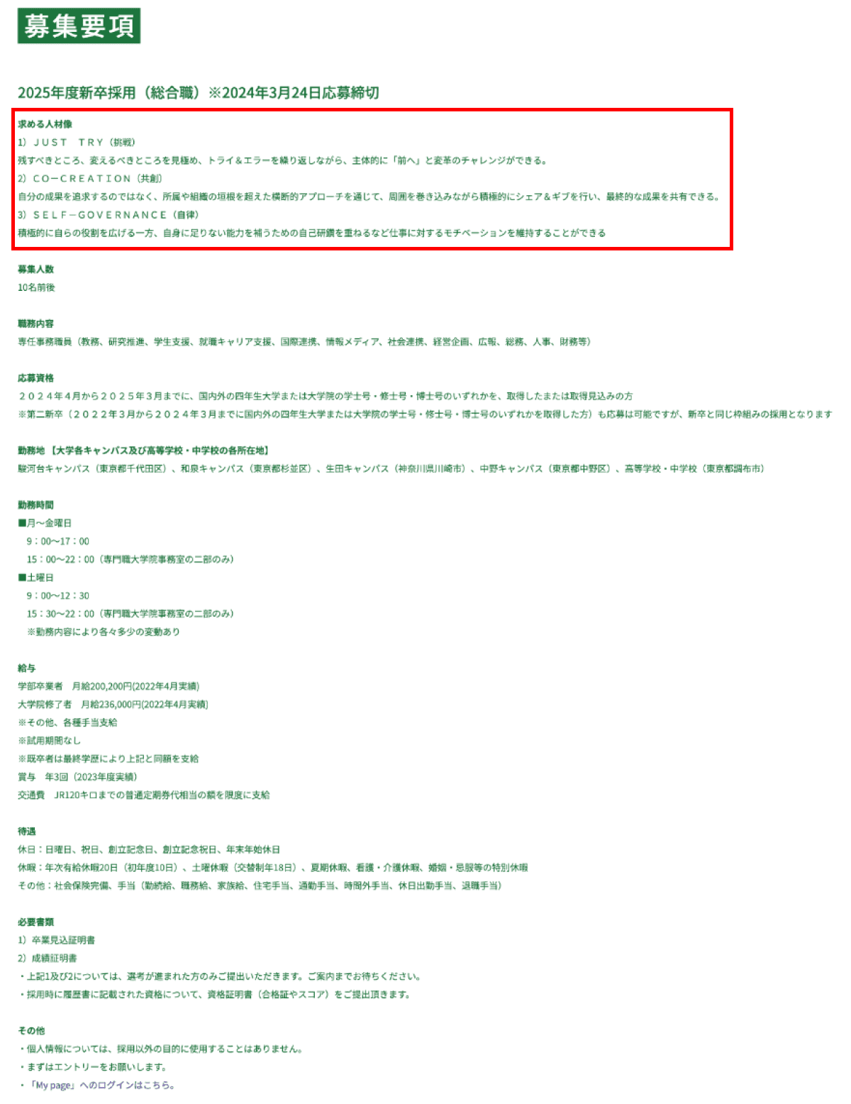 明治大学の職員採用ページはこちら