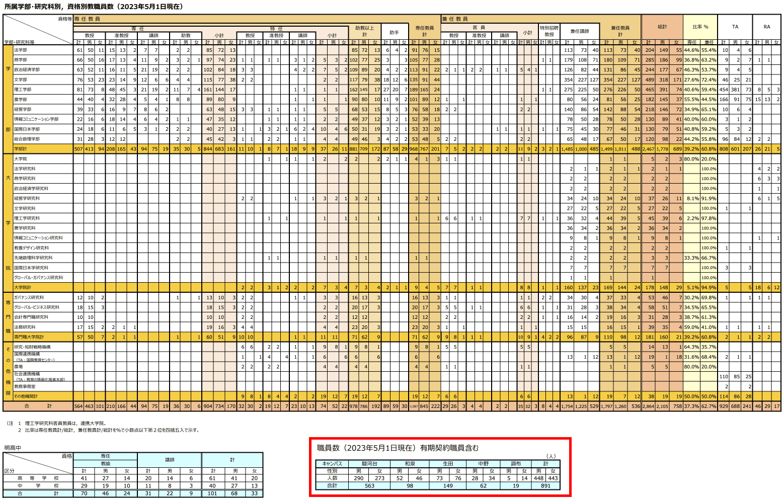https://www.meiji.ac.jp/koho/disclosure/teacher/index.html/所属別、資格別教職員数