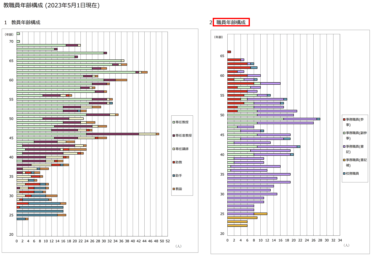 https://www.meiji.ac.jp/koho/disclosure/teacher/6t5h7p0000015hce-att/18_2023.pdf 明治大学 専任教職員の年齢構成より抜粋