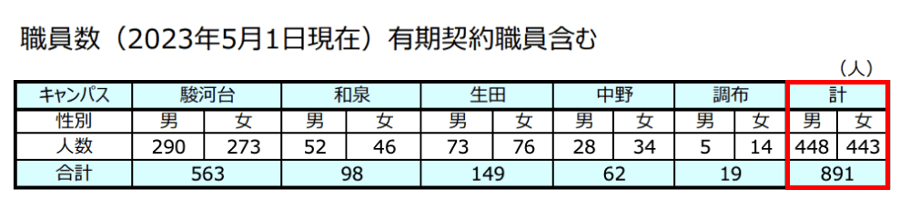 以下は明治大学の職員の総数で、専任・嘱託を含む数ですね。
