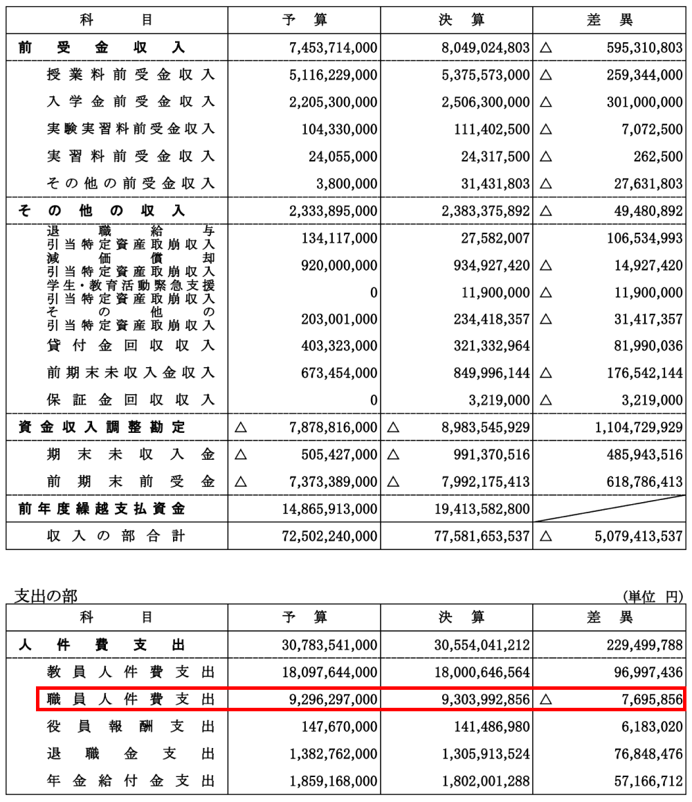 https://www.meiji.ac.jp/zaimu/mkmht000000c9wql-att/2022hankikessan.pdf 明治大学 資金収支計算書より抜粋