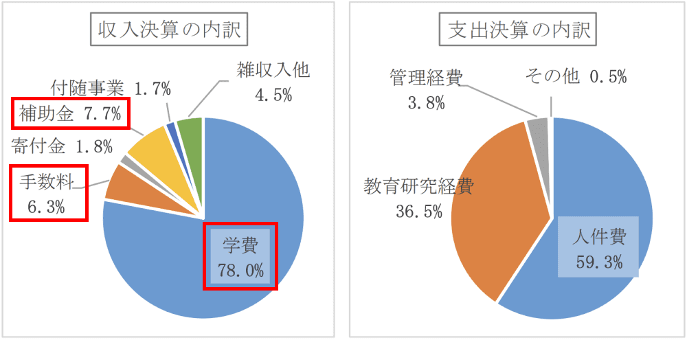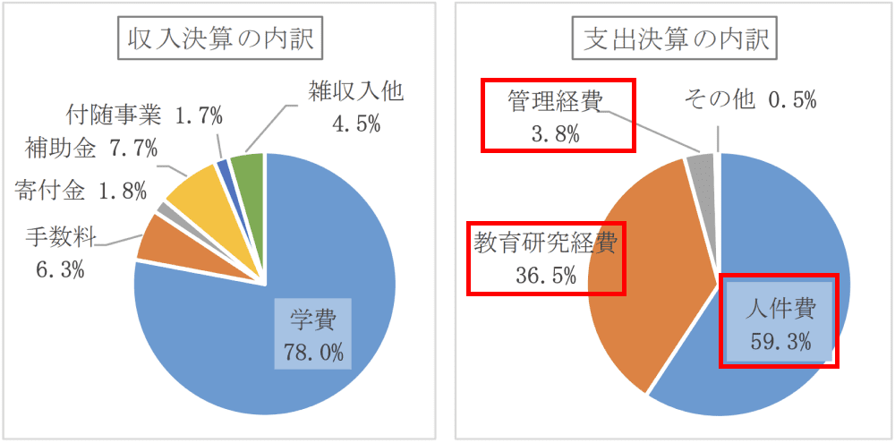 一番の支出が人件費、2番目が教育研究費、3番目が管理経費ですね。