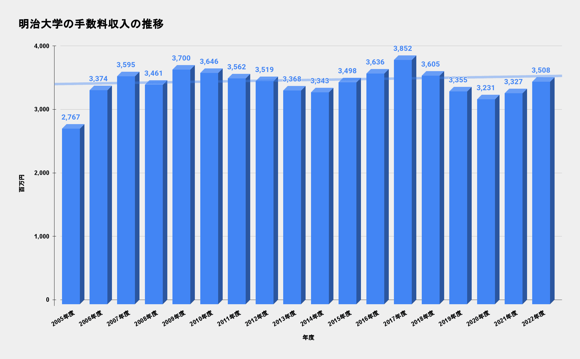 これは明治大学の手数料収入の推移グラフですね。