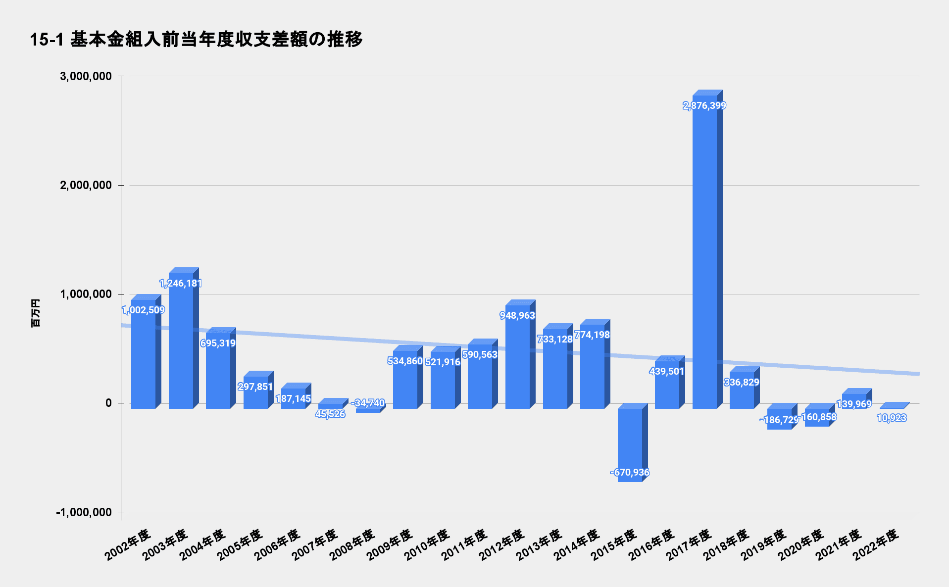 | 増減値(百万円) | – | -115,162 | +40,053 | -68,378 | +66,947 | +155,541 | -86,061 | +14,894 | -67,127 | -4,992 | +153,672 | +165,831 | +59,544 | +7,138 | +70,467 | +17,758 | +140,581 | -70,010 | +490,648 | +281,627 | -10,491 |