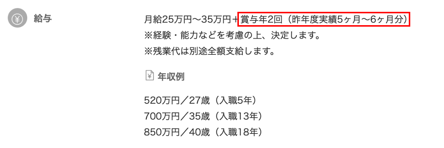 - 契約・派遣の給与・賞与:210,000円、1.8ヶ月分