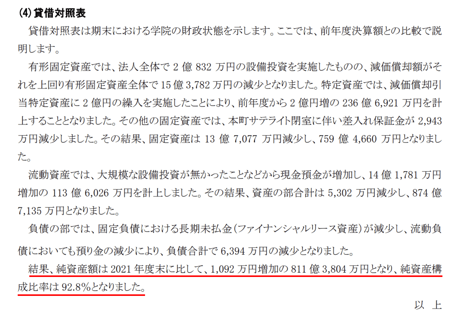 根拠資料は2023年度の報告書がまだ公開されてないので、2022年度の事業報告書・財務情報です。