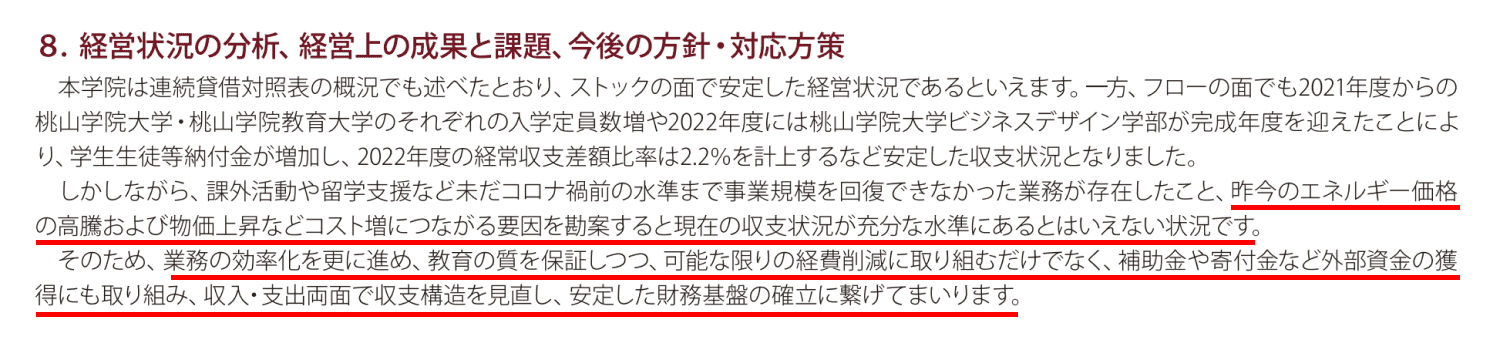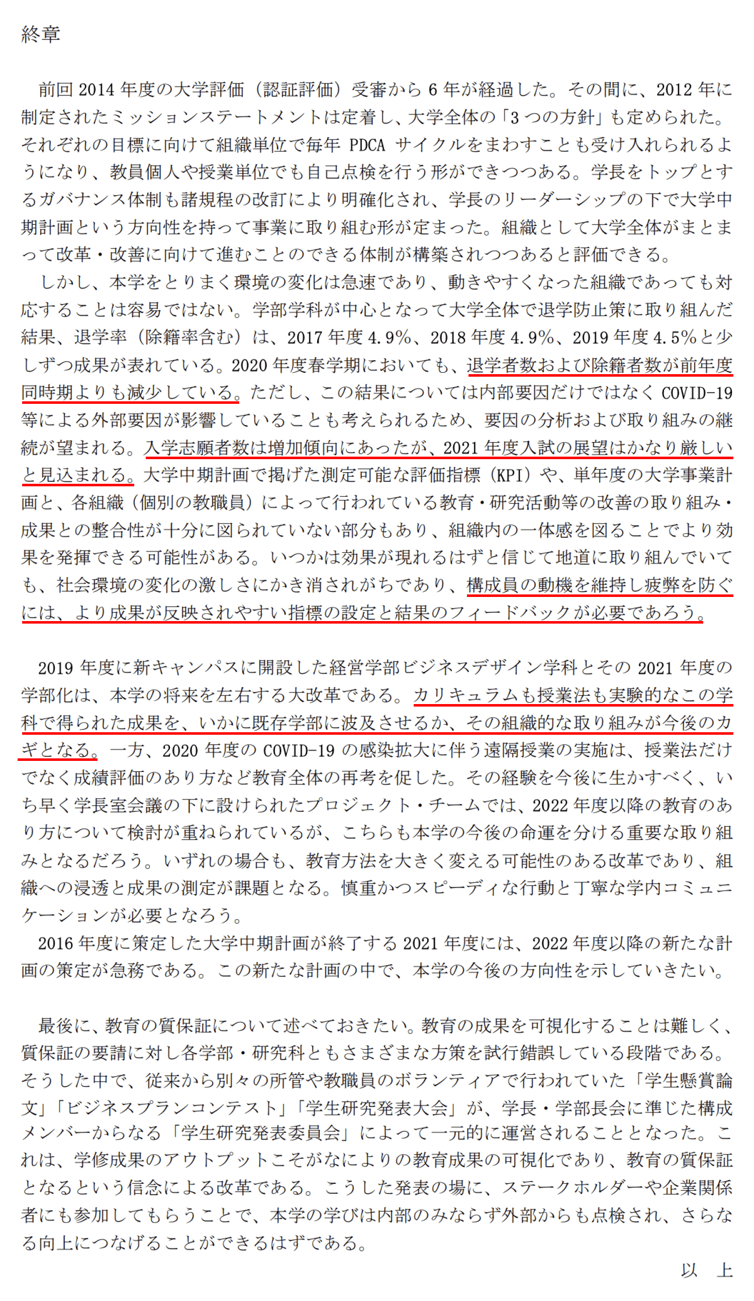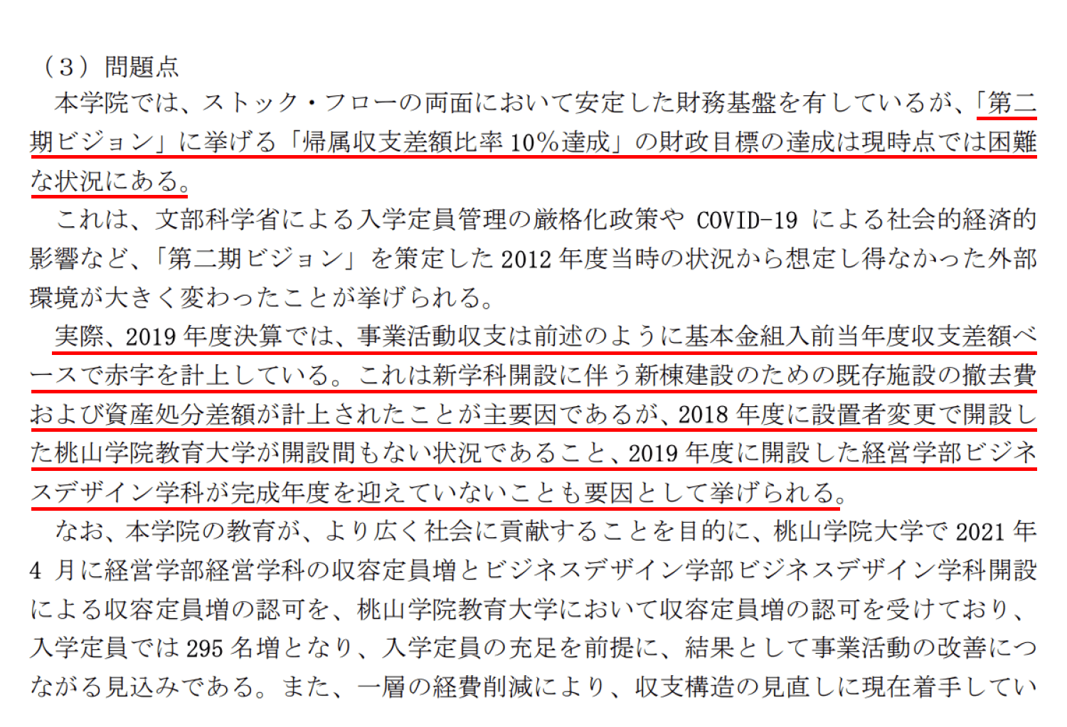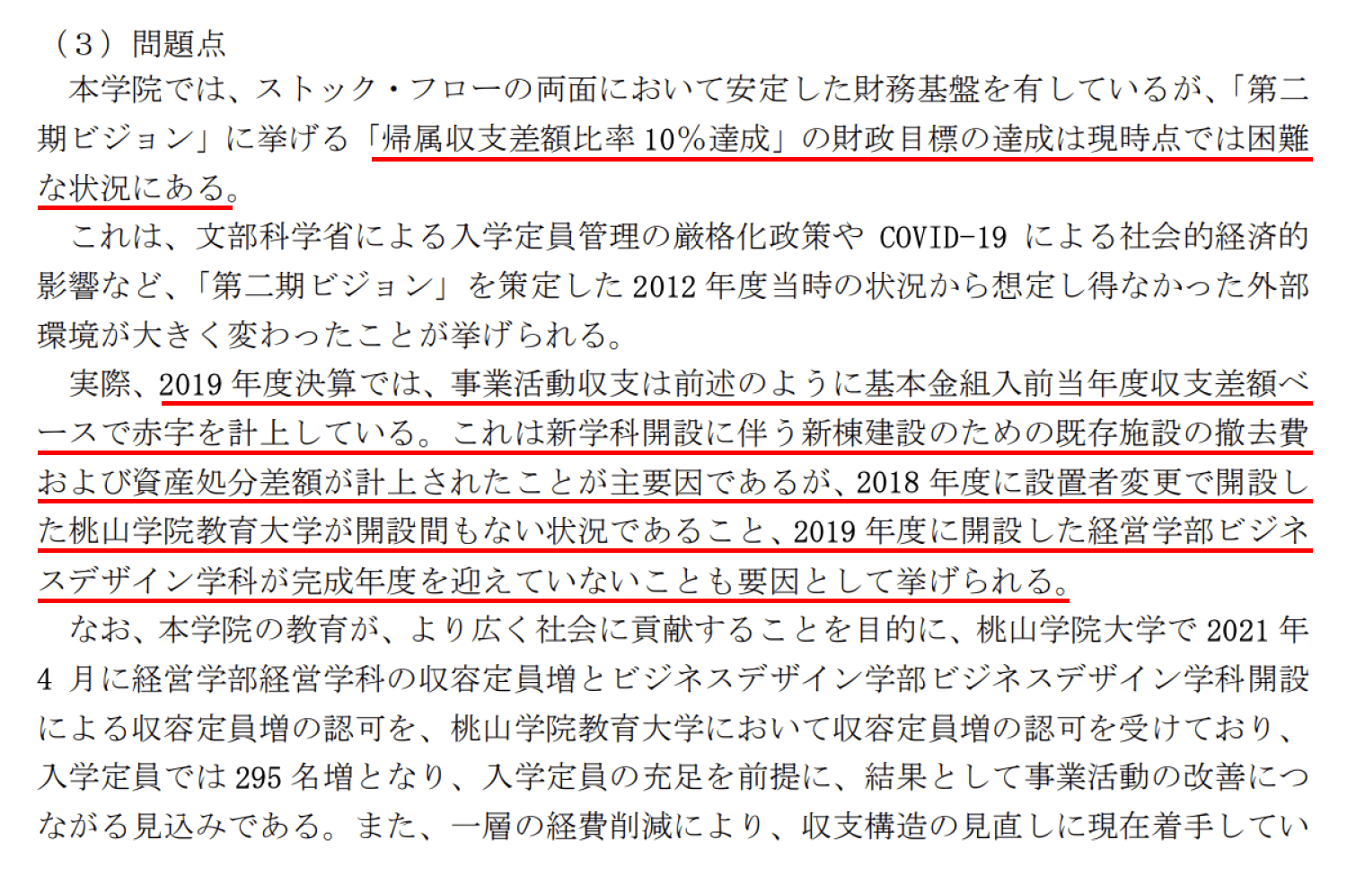 これについては外部機関による大学評価でも指摘「2021年度以降の入学志願者の展望はかなり厳しい状況」があったとこですね。