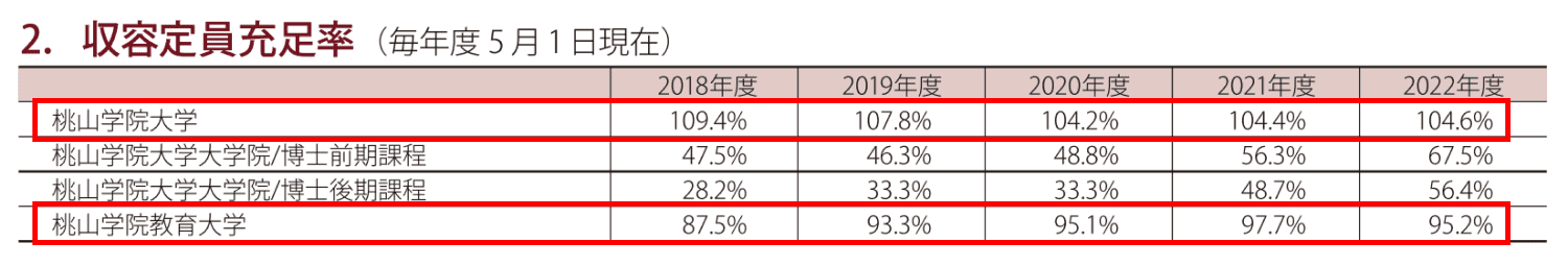 桃山学院教育大学で定員割れを起こしてたんですね。