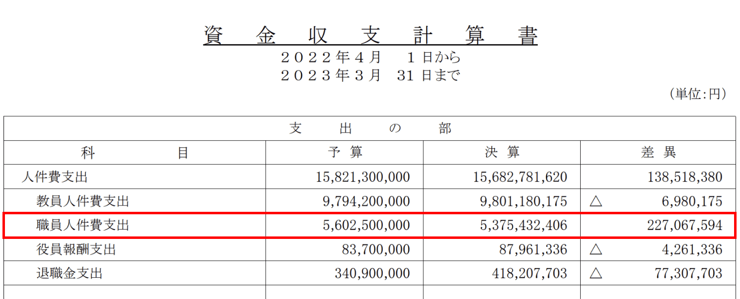 • 専任職員の人件費:5,375,432,406円➖1,482,400,000円🟰3,893,032,406円