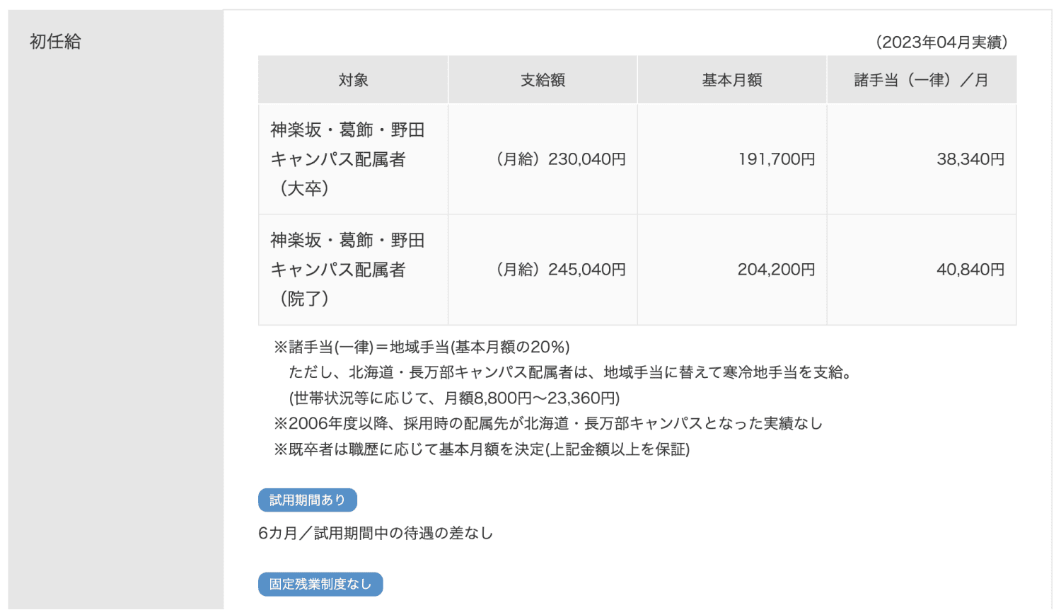 嘱託の給料は専任と比べて低くなるため、専任の給料はこの平均よりも実際は高くなると想定してます。