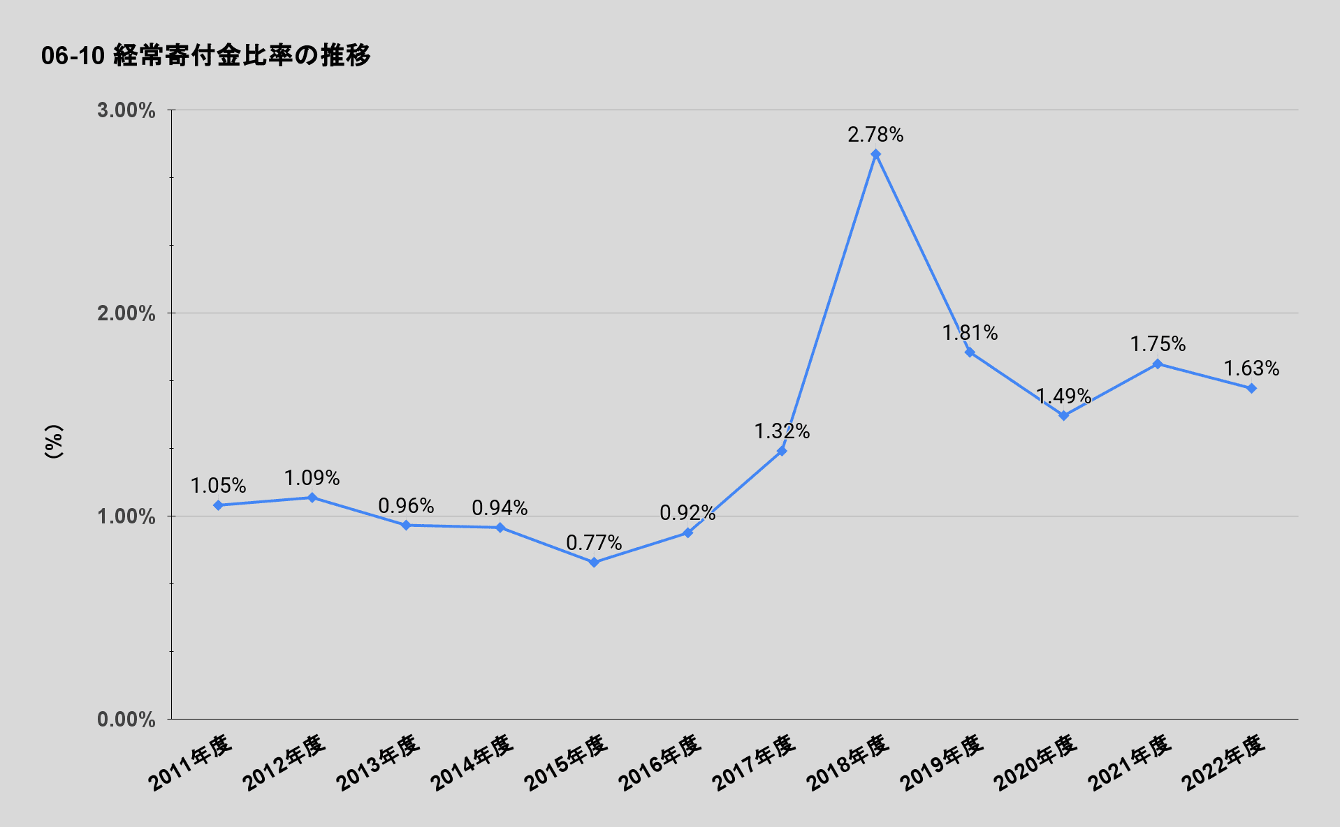 上記寄付金比率につき経常的な要素に限定した比率である。