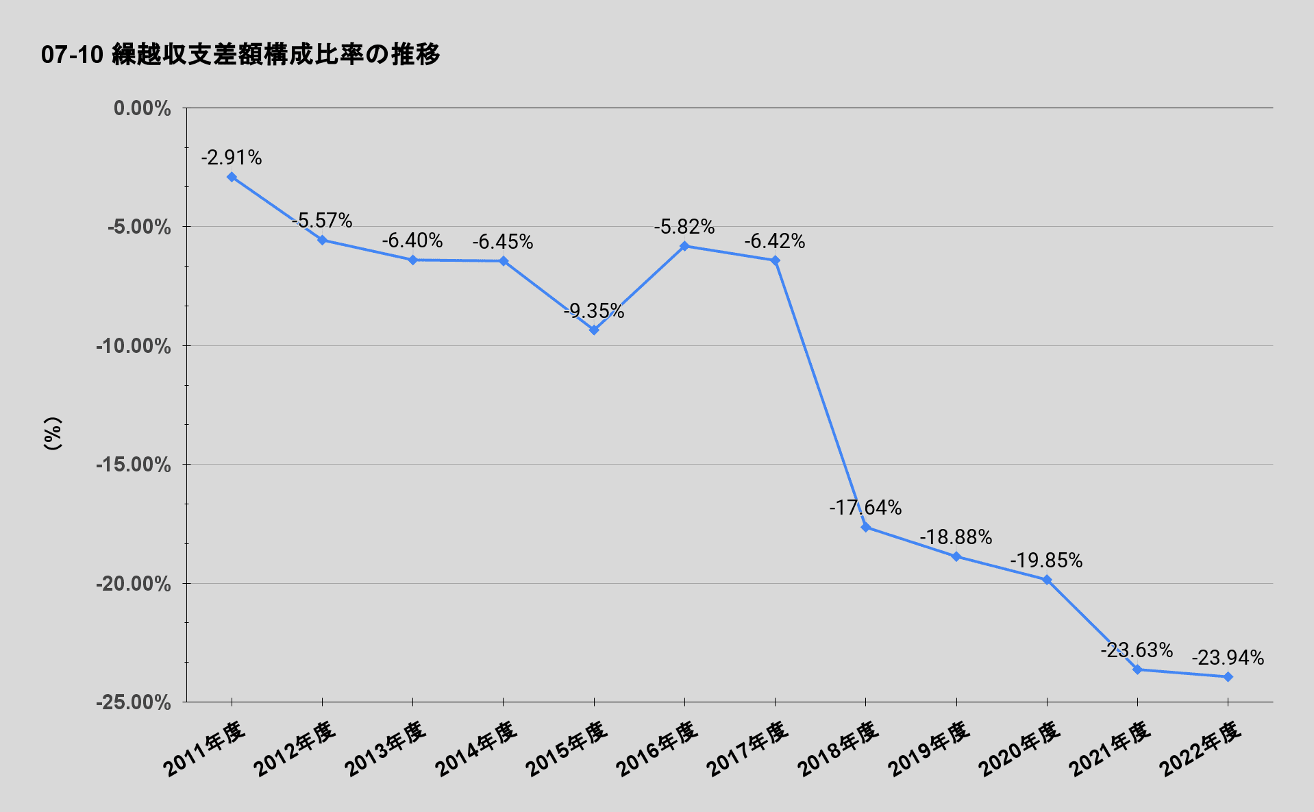繰越収支差額構成比率🟰繰越収支差額➗負債➕純資産