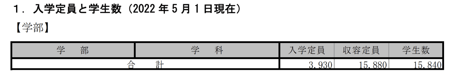 • 志願者数は多いが、収容定員に対して学生数が微妙に定員割れを起こしている状況
